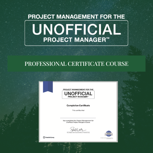 Complete this FranklinCovey course to earn the Project Management for the Unofficial Project Manager™ Completion Certificate to add to your resume and profile.